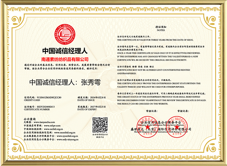 品質サービス誠実企業証明書