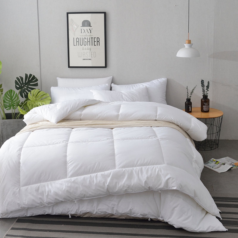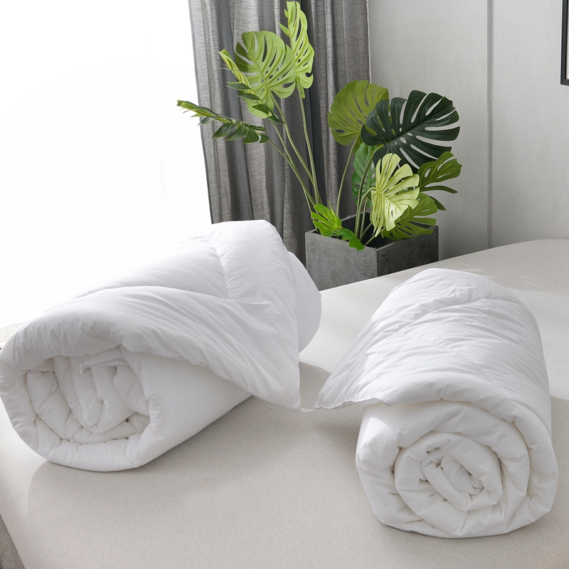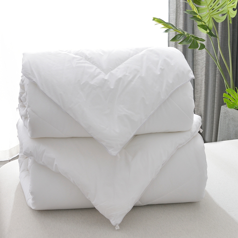 この革新的なシステムは、軽量の羽毛布団と重い羽毛布団の 2 枚で構成されており、個別に使用することも、組み合わせて 1 枚の超暖かい羽毛布団を作成することもできます。当社の 2-in-1 掛け布団は非常に多用途です。軽量の掛け布団は、暑い季節に最適で、過熱することなく通気性があり快適です。一方、重い掛け布団は、涼しい季節に最適な心地よく厚みのある感触を提供します。気温が下がったら、2枚の羽毛布団をつなぎ合わせるだけで、1枚の暖かく快適な羽毛布団になります。この羽毛布団は、柔らかく滑らかで通気性のある表面と高品質のマイクロファイバー中綿を備えており、贅沢な感触と快適で安らかな睡眠を保証します。 Sufang は、お客様の特定のニーズを満たすカスタム サービスを提供します。シングル、ダブル、キング、キング、スーパーキングなどのさまざまな標準サイズを提供しており、カスタムサイズ、パッケージング、ラベル付けも提供しています。