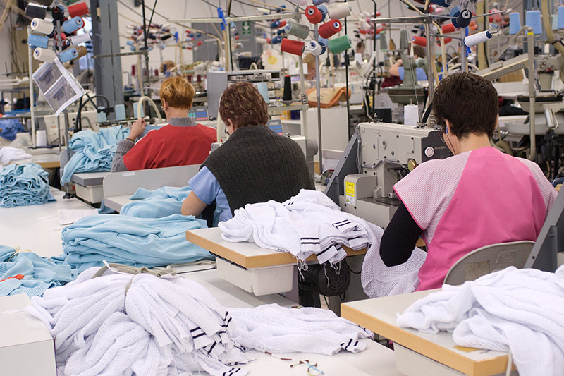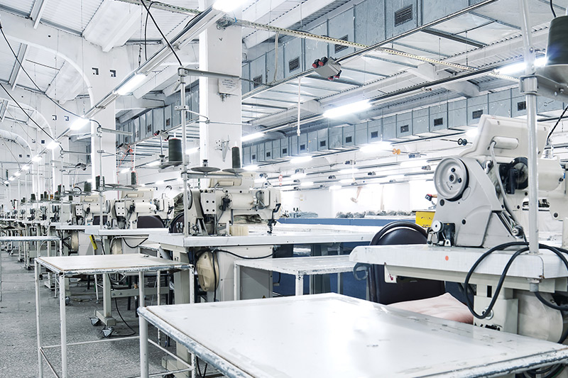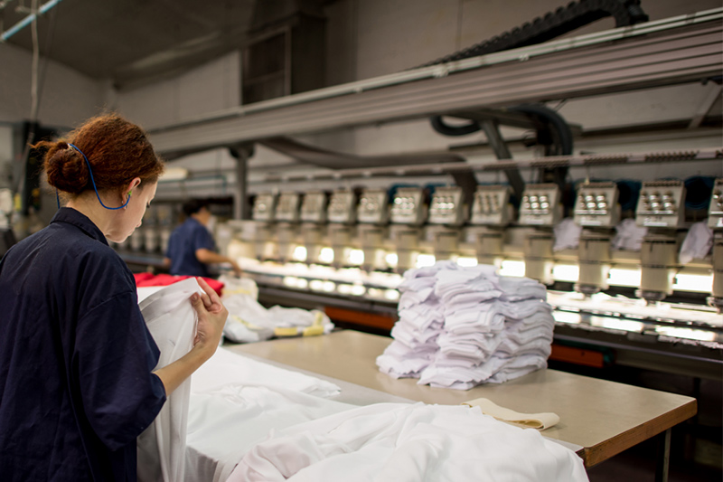 ●自動縫製生産ライン、多針キルティングミシン・オーバーロックミシン。